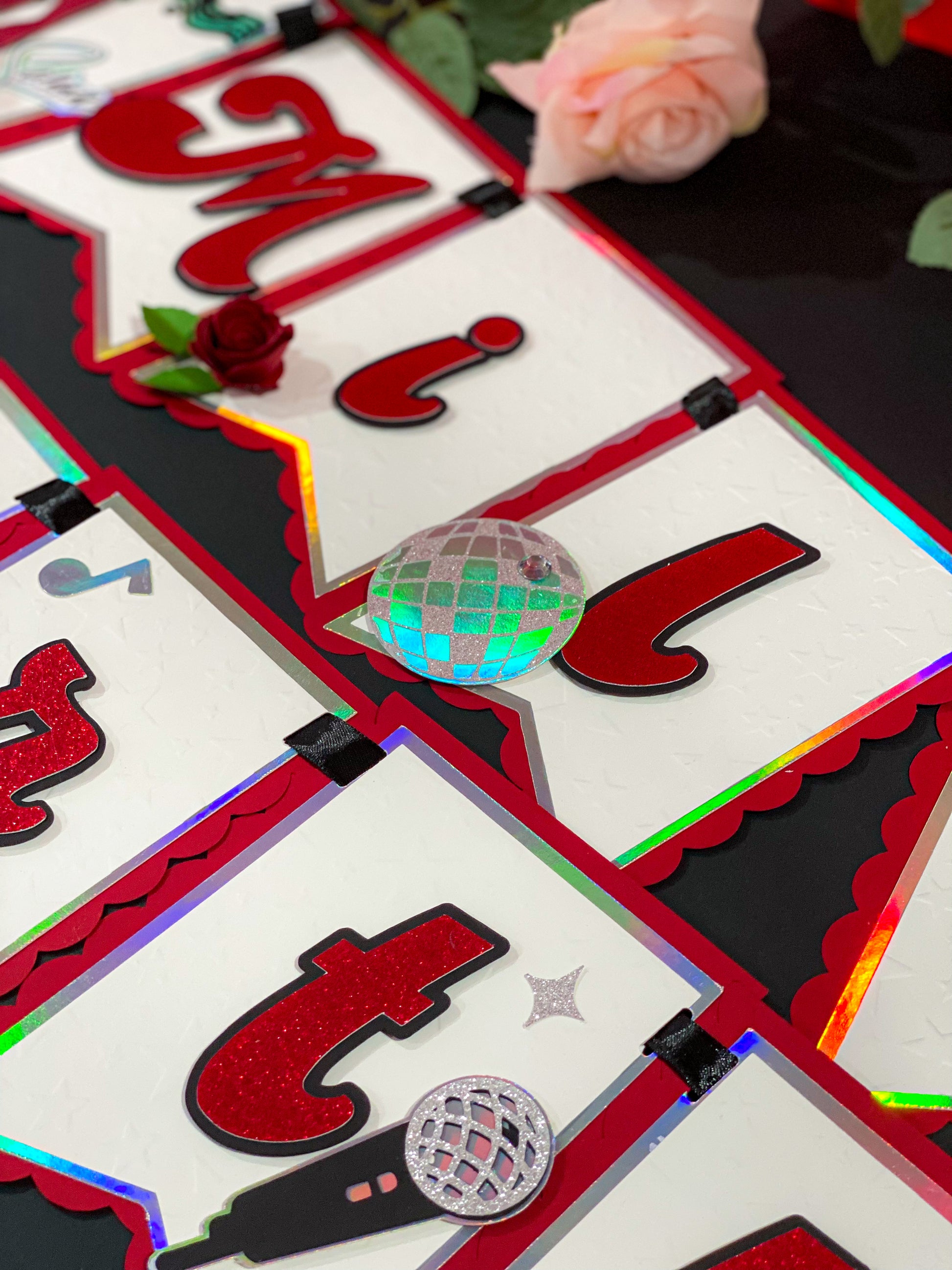 Banner is made from thick low-shed glitter cardstock and/or high quality cardstock. Banner is ribbon and ready to use.